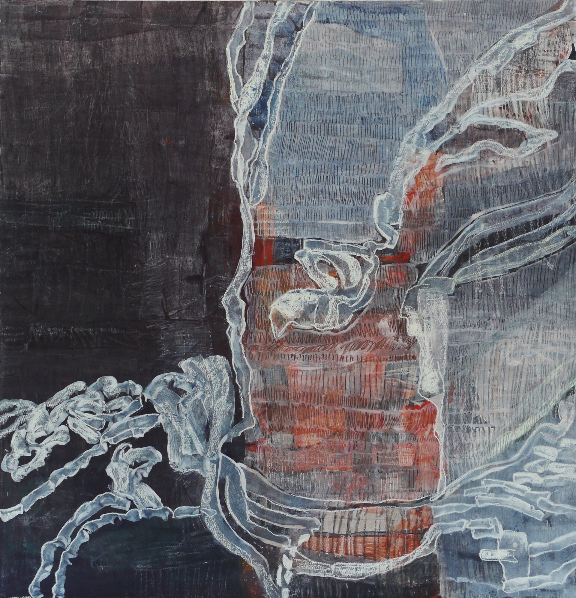 Underneath, 150x146cm, Mischtechnik.