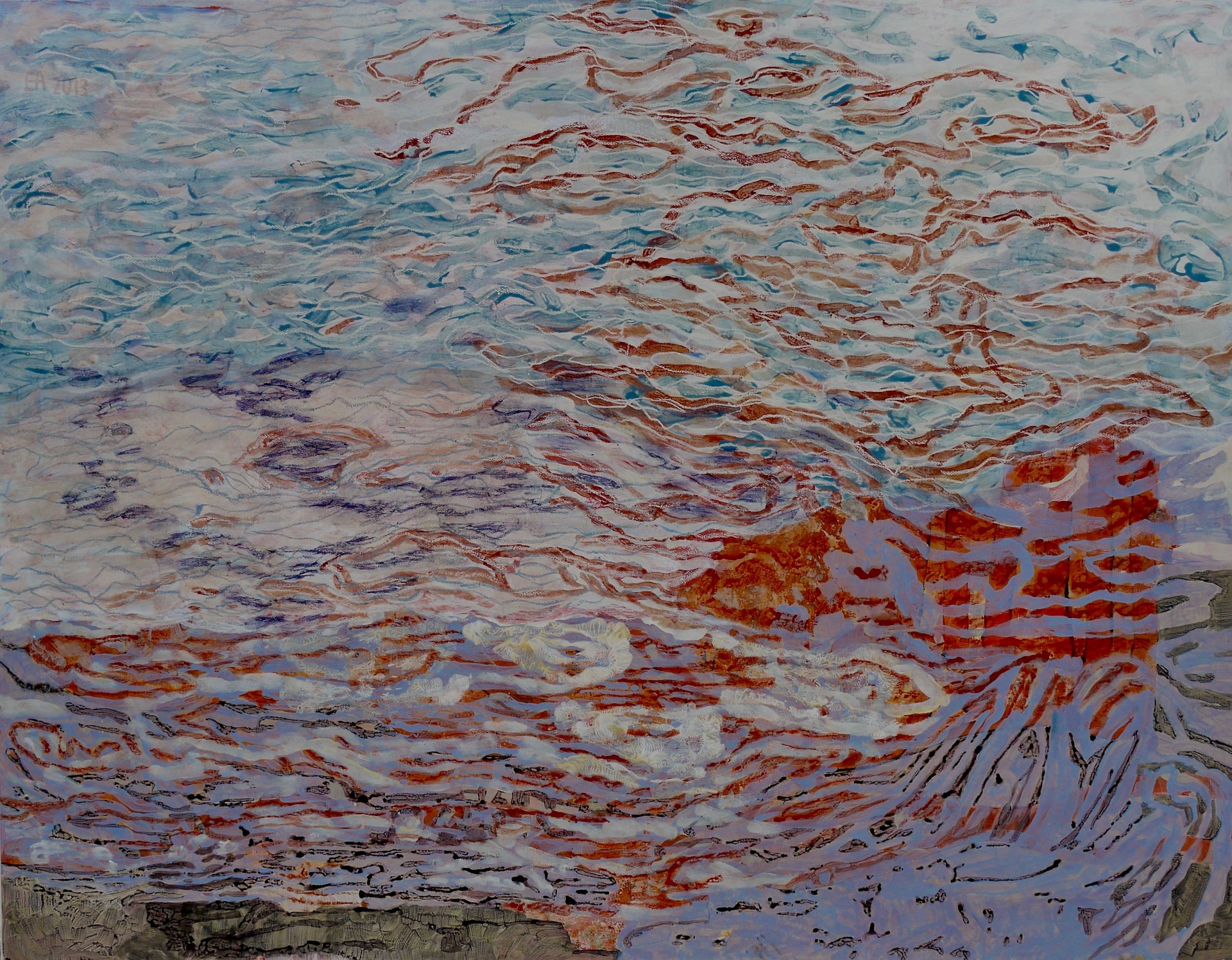 Hebriden, 130x155cm, Acryl-Mischtechnik und Spachtelmasse.