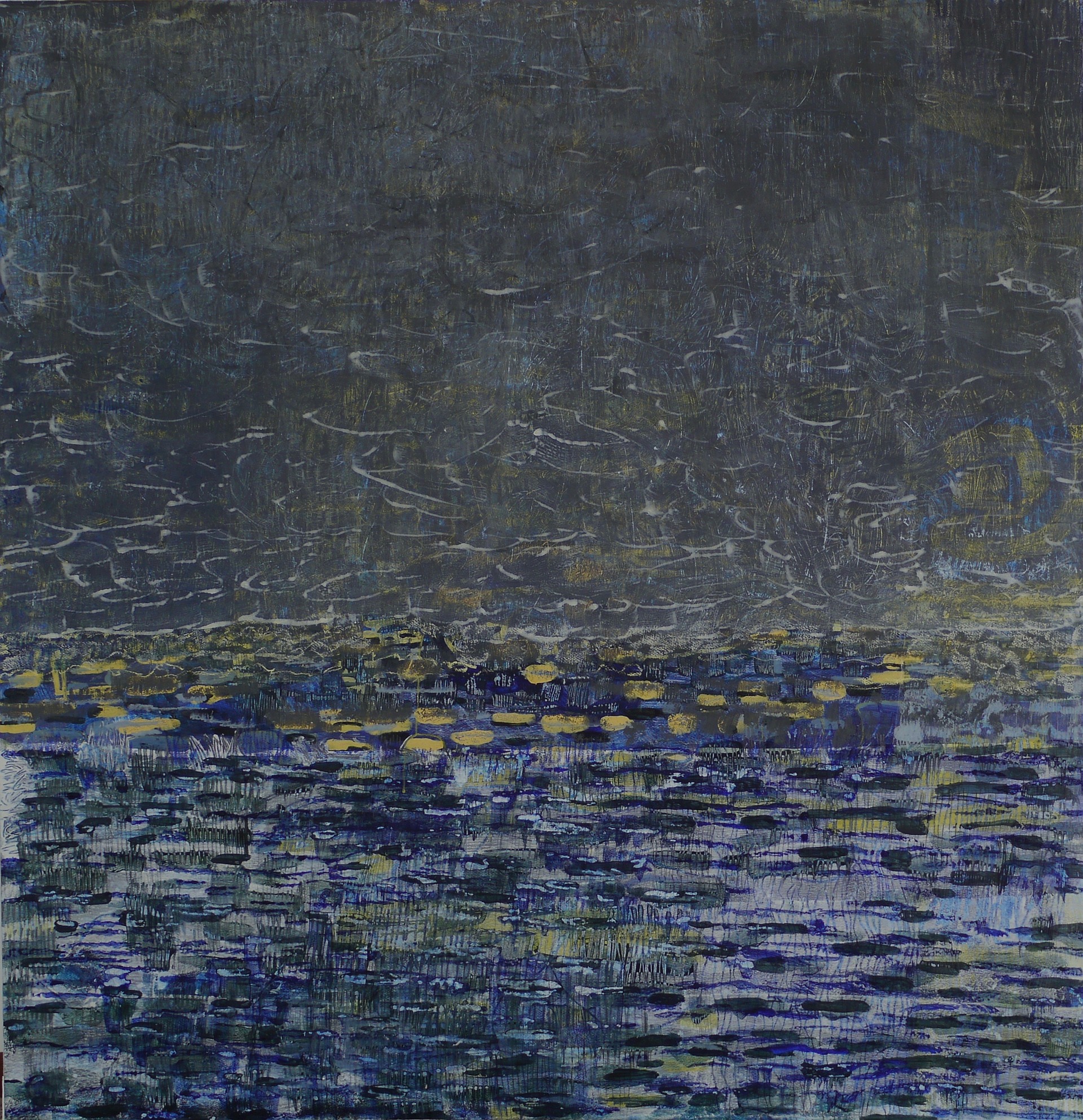 Rauschen, 150x193cm, Acryl, Ölpastell.