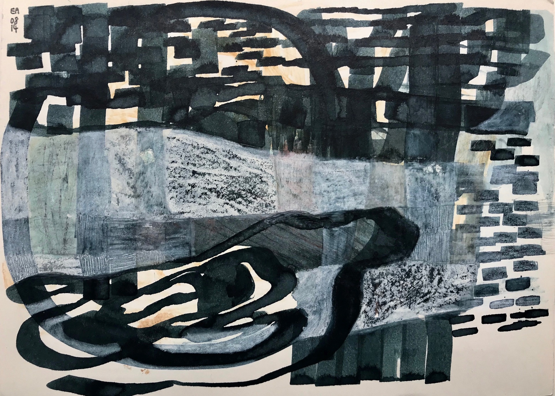 Horizonte, 150x146cm, Japantusche, Aquarell, Graphit.