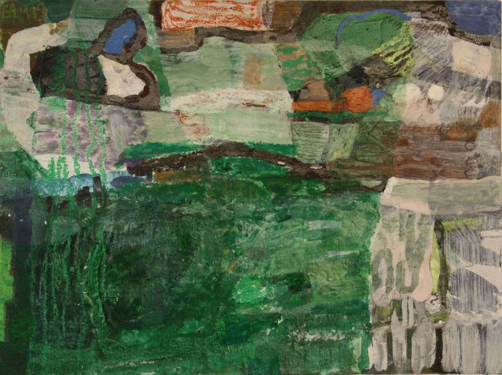 Frühlingsnähe, 27x35cm, Kasein, Ölpastell, Collage.
