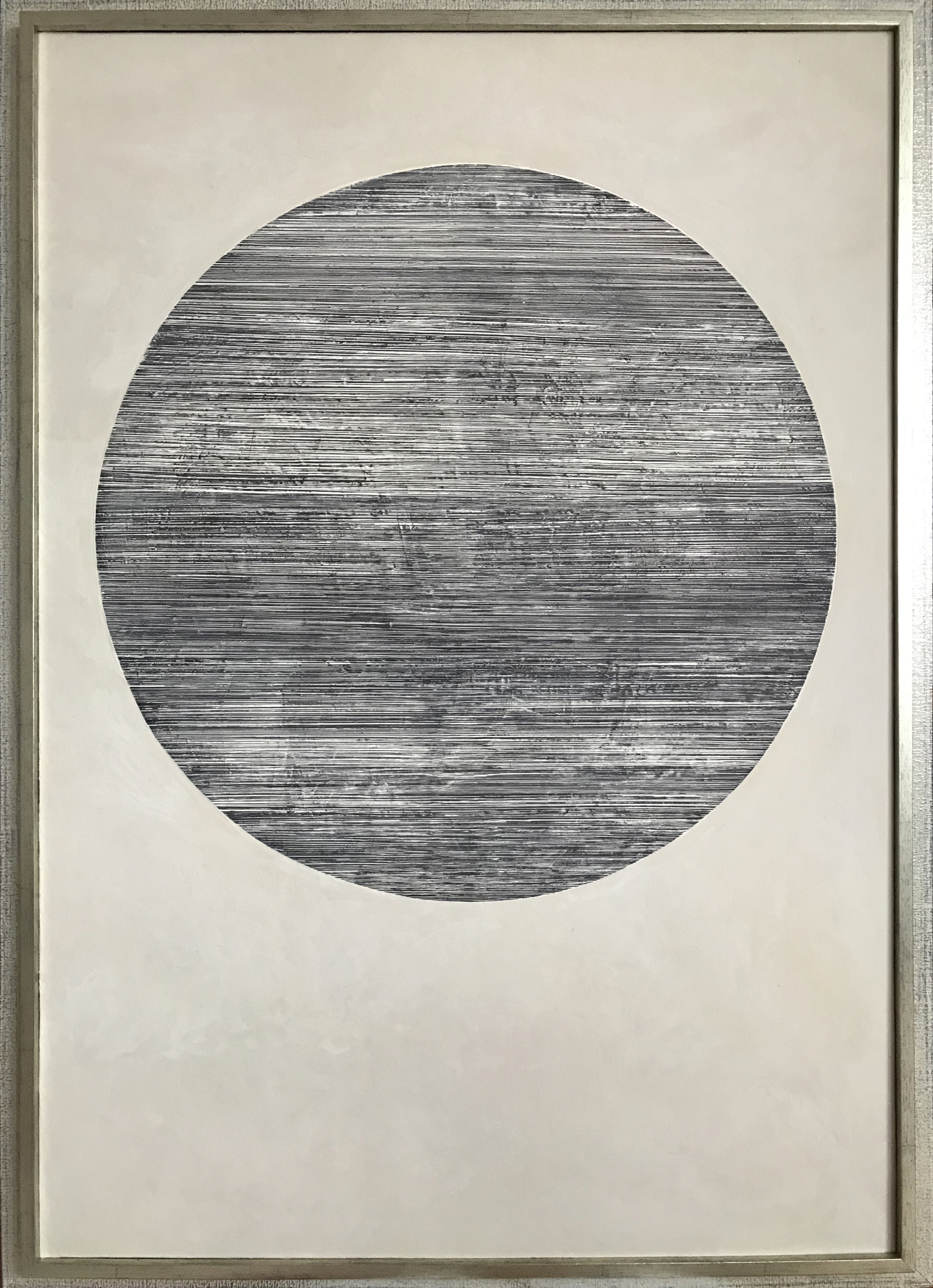 Tondo, 100x70cm, Pigmentstift auf Spachtelmasse geritzt, Leinwand.