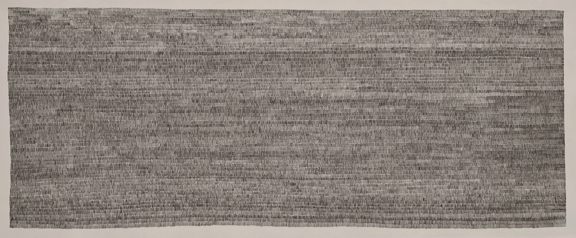 Gewebe, 74x130cm, Pigmentliner und Kreidestaub auf Leinwand.